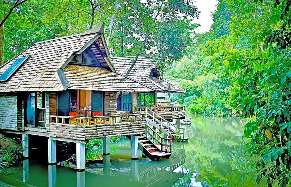 This air-conditioned villa features a large balcony adjacent to the running stream and waterfall. Its private bathroom offers a spa bath overlooking the nature.